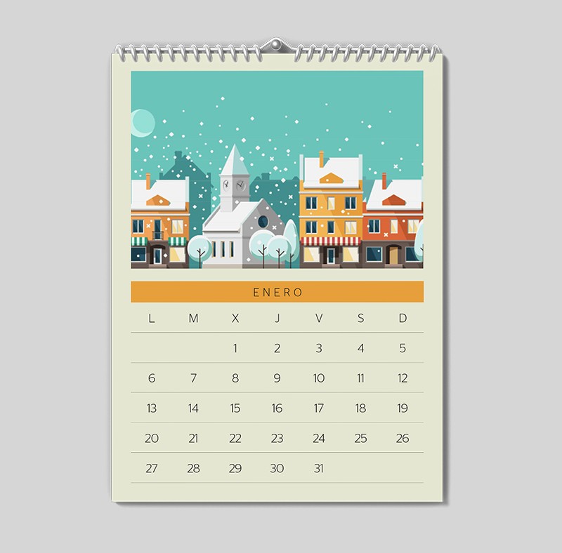 Calendario de pared en formato DIN A3, disponible en versiones de 13 o 14 hojas, según tus necesidades de diseño. La opción de 14 hojas incluye una portada adicional para dar mayor protagonismo a tu marca. Impresos a color por una sola cara sobre papel estucado mate de 170 g, ofrecen una excelente calidad de imagen. Ideales para promociones, empresas o regalos corporativos. Además, en la encuadernación en Wire-o en la parte superior, puedes elegir el color que más se adapte a tu diseño. Los colores disponibles son blanco, negro y plata.