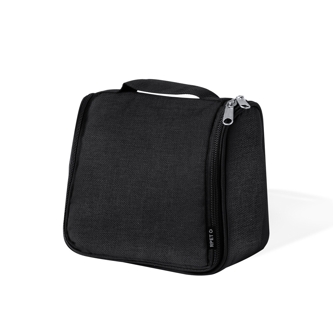 Neceser fabricado en RPET para guardar los objetos de higiene personal, con práctico gancho para poder sujetarlo en cualquier sitio. Práctico Interior con bolsillos de redecilla transpirables, que permiten ver los objetos que hay dentro. Con logotipo RPET en etiqueta. Disponible en varios colores y presentado en una bolsa individual reciclada. El material RPET se elabora a partir de plástico reciclado, para así fomentar la reutilización de residuos plásticos y ayudar a la sostenibilidad del planeta.