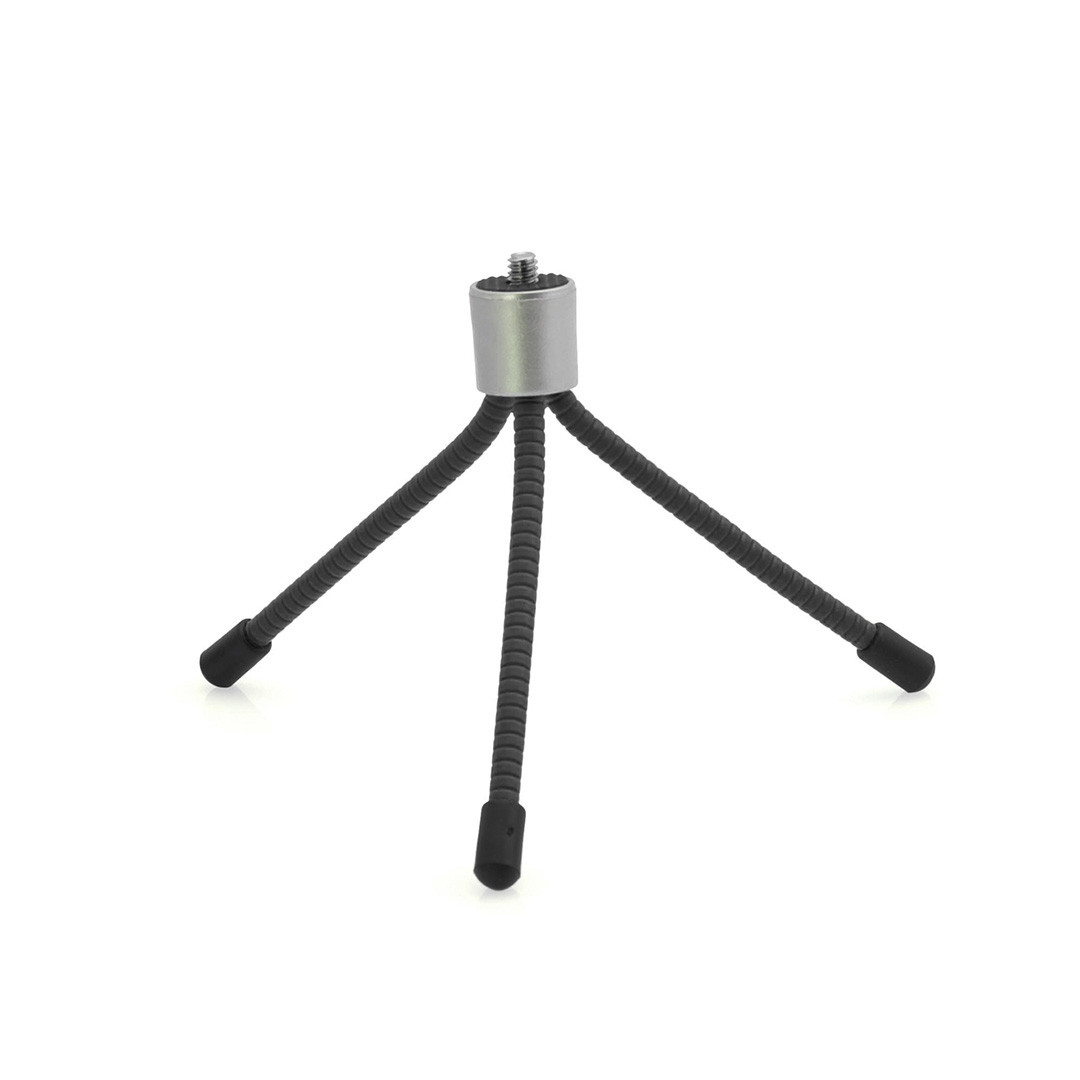 Trípode para cámaras con tornillo de ajuste universal y patas flexibles con acabado en goma antideslizante para fijación en todo tipo de superficies.Presentado en caja individual.