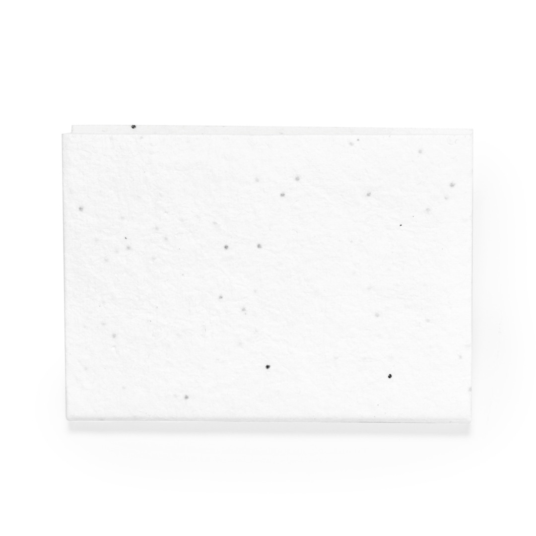 Bloc de notas con cubiertas fabricadas en papel semilla. En su interior, cuenta con 25 notas adhesivas medianas y 125 mininotas adhesivas en varios colores. La cubierta incluye semillas de petunia, convirtiéndolo en papel plantable al final de su vida útil. Incluye instrucciones de plantado en la cubierta trasera y se presenta en una bolsa individual de papel reciclado.