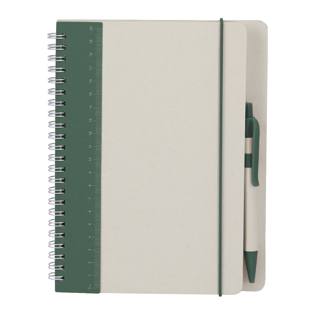 Libreta con con tapas rígidas elaborado con cartones de leche reciclados. Con diseño a doble color. Incluye 70 hojas de color natural a rayas, con banda elástica y portabolígrafos a color. Incluye distintivo Recycled Milk Carton en contraportada y hojas interiores. Incluye bolígrafo con cuerpo en cartón de leche reciclado, con clip a calor en tinta azul. Incluye distintitvo logo de Cartones de Leche Reciclados.